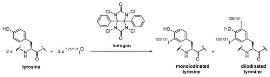 - Farah, K.; Farouk, N. Electrophilic radioiodination of tyrosine derivatives. J. Label. Compd. Radiopharm. 1998, 41, 255–259. [Google Scholar] [CrossRef]