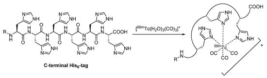 - Waibel, R.; Alberto, R.; Willuda, J.; Finnern, R.; Schibli, R.; Stichelberger, A.; Egli, A.; Abram, U.; Mach, J.P.; Plückthun, A.; et al. Stable one-step technetium-99m labeling of His-tagged recombinant proteins with a novel Tc(I)-carbonyl complex. Nat. Biotechnol. 1999, 17, 897–901. [Google Scholar] [CrossRef] [PubMed]