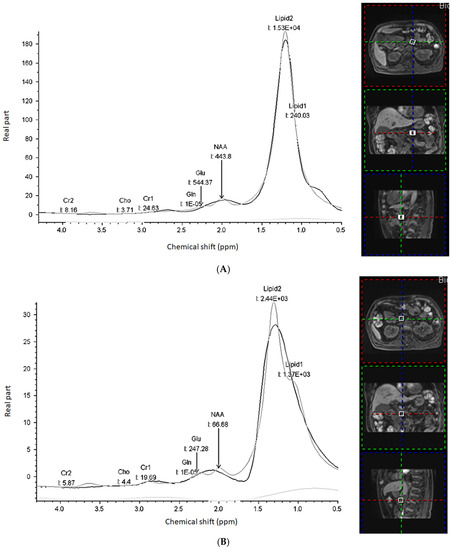 - Cho, S.G.; Lee, D.H.; Lee, K.Y.; Ji, H.; Lee, K.H.; Ros, P.R.; Suh, C.H. Differentiation of Chronic Focal Pancreatitis From Pancreatic Carcinoma by In Vivo Proton Magnetic Resonance Spectroscopy. J. Comput. Assist. Tomogr. 2005, 29, 163–169. [Google Scholar] [CrossRef]
