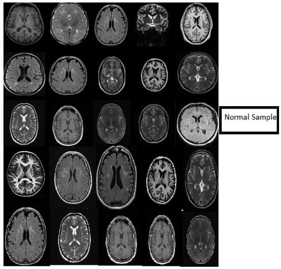 Magnetic Resonance Imaging (MRI) is a well-known medical device used to diagnose and analyze many diseases such as brain tumors, neurological diseases, epilepsy, etc. Usually, a system completely processed by hardware/computer helps automate this process to obtain accurate and fast results. On the other hand, image segmentation is the main task of various computer vision and image processing implementations. The hypothesis of the hash process divides the image into different areas according to some measures for further processing [4,5]. Detection of brain abnormalities is usually done manually using MRI imaging by medical experts. The large-scale manual examination method can often lead to misinterpretation due to some factors such as fatigue and excessive abundance of MRI slices. In addition, it is non-repeatable and results in intra- and inter-reader variability. Alleviating these concerns requires developing a detection system method to diagnose various brain abnormalities. It also helps in promoting fast, reliable, and accurate analysis and supports the clinicians in their final selection process. Machine learning techniques are mainly used to design and automate systems that have enjoyed spectacular success in recent decades. Many methods (also known as automatic detection of pathological brain systems) have been formulated to classify the brain’s different MRI scans. These diagrams mainly focus on solving two brain types based on MRI classification disorders, namely binary and multiclass. In the binary category, brain MRI scans are classified as either pathological (abnormal) or normal.