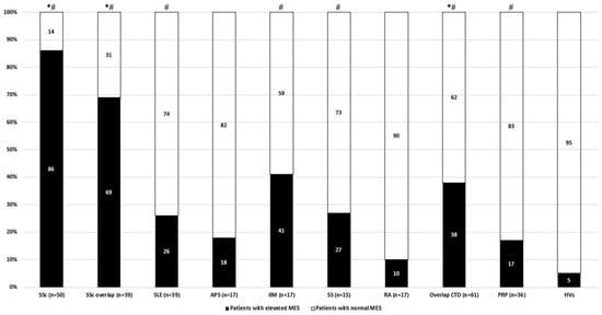 - Granier, F.; Vayssairat, M.; Priollet, P.; Housset, E. Nailfold capillary microscopy in mixed connective tissue disease. Comparison with systemic sclerosis and systemic lupus erythematosus. Arthritis Rheum. 1986, 29, 189–195. [Google Scholar] [CrossRef]