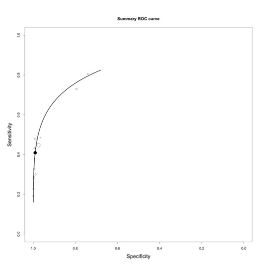 The statistical analysis was performed with the OpenMeta[Analyst] for OS X Sierra (10.12) software [5]. Finally, the PRISMA-DTA guidelines for reporting reviews and meta-analyses of diagnostic test accuracy studies were also applied (Table S1; Supplementary Material) [6].