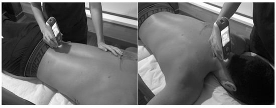 - Lohr, C.; Braumann, K.M.; Reer, R.; Schroeder, J.; Schmidt, T. Reliability of tensiomyography and myotonometry in detecting mechanical and contractile characteristics of the lumbar erector spinae in healthy volunteers. Eur. J. Appl. Physiol. 2018, 118, 1349–1359. [Google Scholar] [CrossRef]