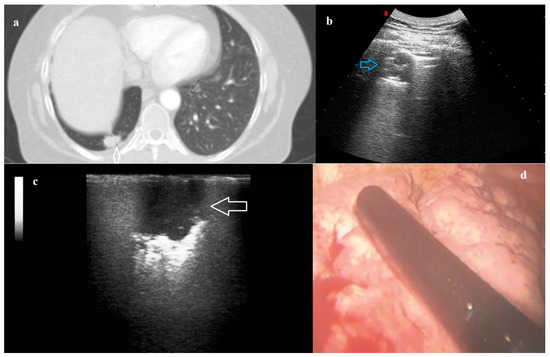 - Jeon, K.N.; Bae, K.; Park, M.J.; Choi, H.C.; Shin, H.S.; Shin, S.; Kim, H.C.; Ha, C.Y. US-guided transthoracic biopsy of peripheral lung lesions: Pleural contact length influences diagnostic yield. Acta Radiol. 2014, 55, 295–301. [Google Scholar] [CrossRef]