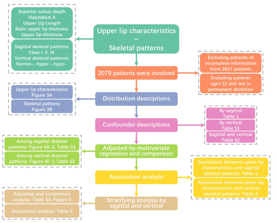The following are available online at https://www.mdpi.com/article/10.3390/diagnostics11091713/s1. Table S1: Demographic and clinical characteristics of samples involved in this study stratified by vertical skeletal pattern. Table S2: Demographic and clinical characteristics of samples involved in this study stratified by sagittal and vertical skeletal pattern. Table S3: Adjusted values of upper lip characteristics in sagittal and vertical skeletal patterns. Table S4: Adjusted values of upper lip characteristics stratified by sagittal and vertical skeletal patterns.