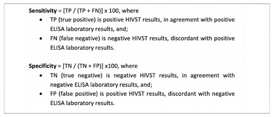- World Health Organization. Technical Specifications Series for Submission to WHO Prequalification—Diagnostic Assessment: Human Immunodeficiency Virus (HIV) Rapid Diagnostic Tests for Professional Use and/or Self Testing; World Health Organization: Geneva, Switzerland, 2016. [Google Scholar]