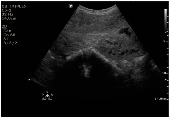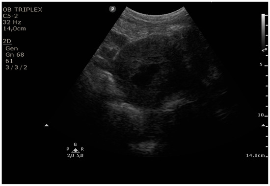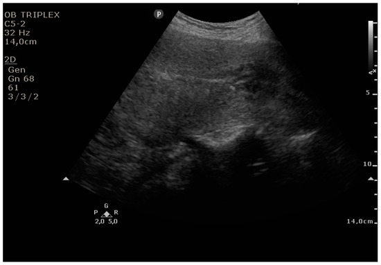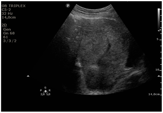 - Edwards, A.; Ellwood, D.A. Ultrasonographic evaluation of the postpartum uterus. Ultrasound Obstet. Gynecol. 2000, 16, 640–643. [Google Scholar] [CrossRef] [PubMed]