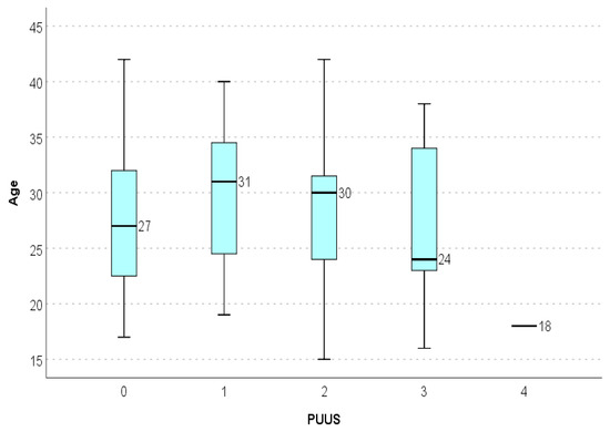 The mean age was 27.72 years (range, 15–42). The distribution of patients regarding the PUUS values is presented in Table 1.