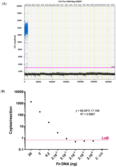 2.5. Determination of the Limit of Blank (LoB) and Limit of Detection (LoD) of Fn ddPCR