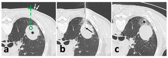 - Wang, Y.; Li, W.; He, X.; Li, G.; Xu, L. Computed tomography-guided core needle biopsy of lung lesions: Diagnostic yield and correlation between factors and complications. Oncol. Lett. 2014, 7, 288–294. [Google Scholar] [CrossRef] [PubMed] [Green Version]