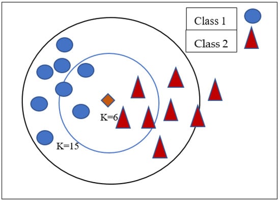 The KNN algorithm recognizes similarities between new and previous data points and categorizes fresh test points into existing related groups. The KNN method is a slow learning algorithm since it is not parametric. This means that instead of learning from the training data set, it should be secured. It uses K to categorize the data. The distance between the new location and the saved training point was determined using the Euclidean distance. Figure 2 depicts K-Nearest neighbor classification based on K values.