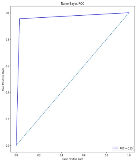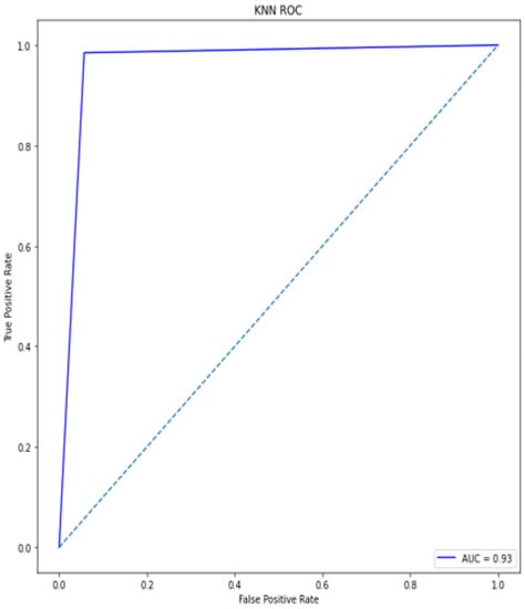 The bottom of the square and the ROC curve define the area of the AUC. AUC scores closer to 1 indicate good performance, whereas AUC scores closer to 0.50 indicate poor performance. Figure 12, Figure 13, Figure 14, Figure 15, Figure 16 and Figure 17 shows the ROC/AUC curve of the proposed model, logistic regression, Decision tree, SVM, KNN, and Naïve Bayes respectively. The proposed model achieved the highest AUC score value 1.0.