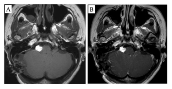 - Nakao, S.; Yamamoto, T.; Fukumitsu, T.; Ban, S.; Motozaki, T.; Sato, S.; Otsuka, S.; Nakatsu, S.; Tabuchi, T.; Saiwai, S. Cerebellopontine angle lipoma. Case report. Neurol. Med. Chir. 1988, 28, 1113–1138. (In Japanese) [Google Scholar] [CrossRef] [PubMed][Green Version]