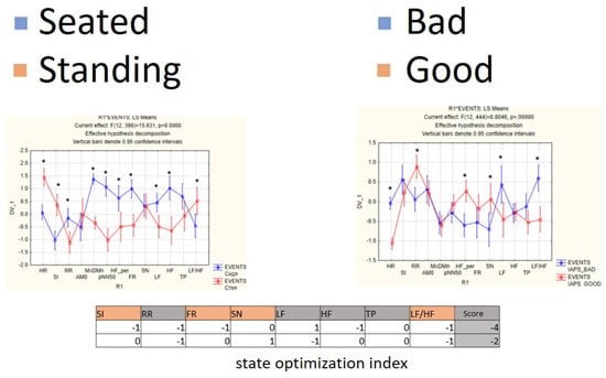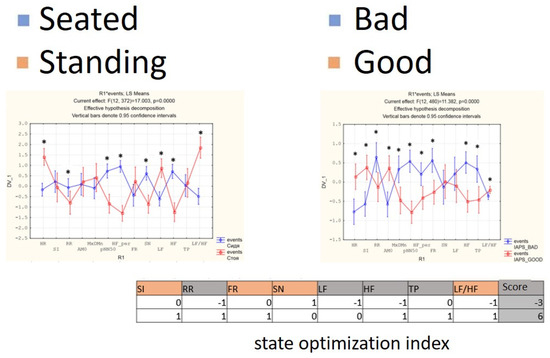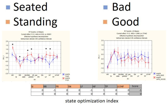 HRV is the time interval from the start of a cycle of one heartbeat to the start of another heartbeat. This interval is constantly changing and can be observed even during rest in a supine position. HRV indices are reliable data for identifying the tone of the ANS (autonomic system, its sympathetic and parasympathetic divisions) and for analyzing the controllability of physiological functions of the body. Scholars use HRV to assess the changes and dynamics of the psycho-emotional state of an individual [20].