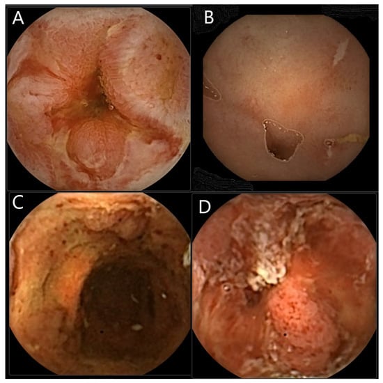 - Flamant, M.; Trans, C.; Maillard, O.; Sacher-Huvelin, S.; Rhun, M.; Galmiche, J.; Bourreille, A. The prevalence and outcome of jejunal lesions visualized by small bowel capsule endoscopy in Crohn’s disease. Inflamm. Bowel Dis. 2013, 19, 1390–1396. (In English) [Google Scholar] [CrossRef] [PubMed]