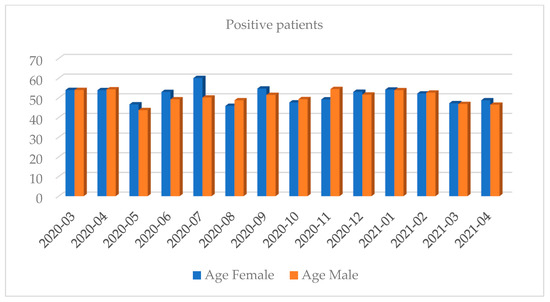 Figure 4. Distribution of positive results by the average age and gender in a given month.