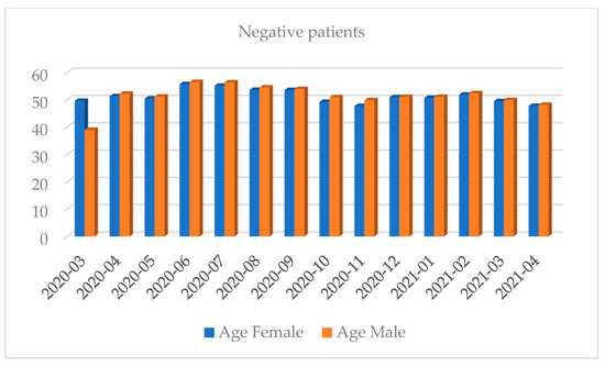 Figure 5. Distribution of negative results by the average age and gender in a given month.