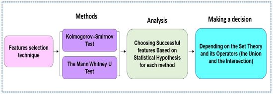 To eliminate redundant features, the Kolmogorov–Smirnov (KST) and Mann–Whitney U (MWUT) Tests are integrated, by which the extracted features are investigated and ranked based on KST and MWUT metrics and arithmetic operators adopted to deduce the most pertinent classified features for each pair of the EEG signal group.
