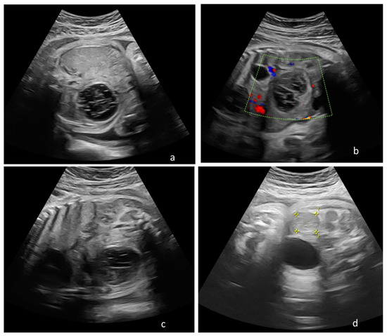 - Tyraskis, A.; Bakalis, S.; Scala, C.; Syngelaki, A.; Giuliani, S.; Davenport, M.; David, A.; Nicolaides, K.; Eaton, S.; De Coppi, P. A retrospective multicenter study of the natural history of fetal ovarian cysts. J. Pediatr. Surg. 2018, 53, 2019–2022. [Google Scholar] [CrossRef] [PubMed]