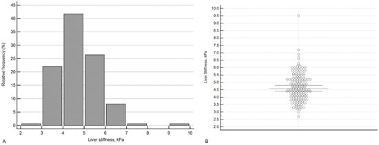 Figure 1 shows the distribution of liver stiffness values in the study group.