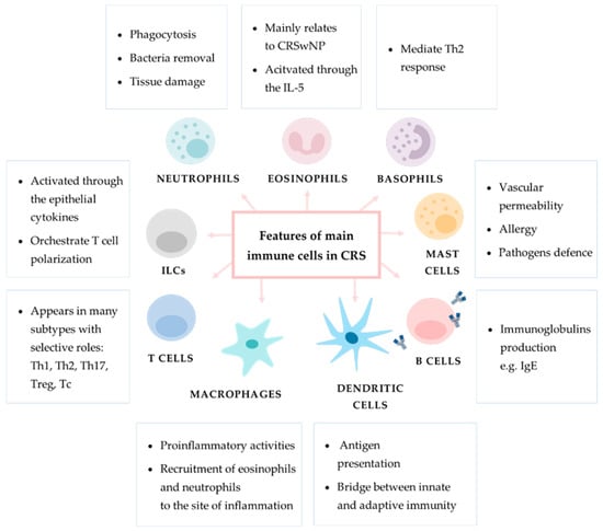 General information regarding the role of immune cell populations in chronic inflammation in CRS are shown in Figure 5.