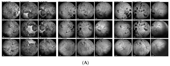 For stromal choroiditis, OCT-A is even less suited as it only shows the very diverse effects of choroidal infiltration on choroidal blood flow, a secondary effect of choroiditis difficult to interpret, as it can be due to choriocapillaris collapse due to choroidal granulomas or to choroidal atrophy. ICGA, in contrast, shows the primary lesion and choroidal infiltration and is very reactive to guide therapeutical intervention [52]. Moreover, as shown in Figure 4 and Figure 5, the bulk of lesions is in the periphery beyond the reach of today’s routine OCT-A instruments.