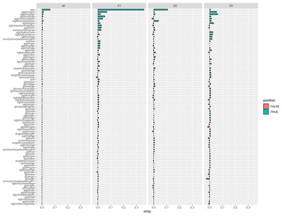 A variable importance plot showing that while mean ADC effectively differentiates well (X1) from moderate (X2) and poor (X3), the addition of radiomics features is particularly helpful in improved differentiation between moderate and poor categories.