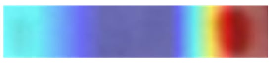 Increasing interest in the internal mechanisms of CNNs and the reasoning behind the specific decisions made by networks has led to the development of visualization techniques. The visualization techniques help in obtaining a better visual representation in order to interpret the decision-making processes of CNNs. These also increase the model’s transparency by visualizing the logic behind the inference that can be interpreted in a way that is easily understandable to humans, thereby increasing confidence in the outcomes of neural networks. Amongst the various visualization techniques, such as SmoothGrad [], Grad-CAM [], Grad-CAM++ [] and Score-CAM [], the recently proposed Score-CAM was used in this work due to its promising performance. Score-CAM avoids the dependence on gradients by obtaining the weight of each activation map through its forward passing score on the target class.The final result is obtained through a linear combination of weights and activation maps. A sample image visualization obtained using Score-CAM is shown in Figure 2, where the heat map indicates regions that dominantly contributed in the decision-making of the CNN. This can be helpful in understanding how the network is making its decision and also in improving the confidence of the end-user when it can be confirmed that at all times the network is making decisions using the Hb electrophoresis images. In regard to specific lane images from the dataset, it is clearly visiblethat the model was making a decision based on the HbF and HbA bands, as this part is reddish. The blue zone part means this part made less of a contribution to the decision made by the network.