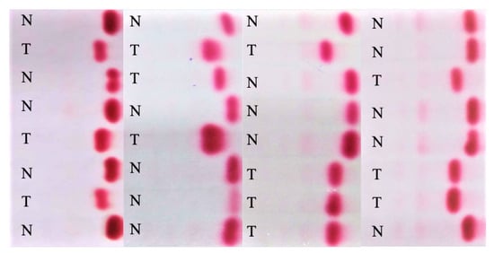 The test procedure of Hb electrophoresis is simple; however, multiple steps are involved. Briefly, red cells are lysed to liberate the haemoglobin into a solution. This lysate is then applied on a suitable electrophoresis medium (e.g., a cellulose acetate strip) to perform electrophoresis. Due to variations in ionic charge, the various Hb variants travel different distances. This strip is then dipped into a Ponceau staining solutionto highlight the bands. Hb electrophoresis test images contain the blood samples of more than one patient (up to eight patients) on a single cellulose sheet, as shown in Figure 1A,B. Figure 1A shows the Raw Hb electrophoresis slide images of eight subjects, where normal patients are denoted by N and thalassaemia patients are denoted by T, and Figure 1B shows standard normal and beta thalassaemia patterns of Hb electrophoresis images. In the figure, haemoglobin A (HbA), also known as adult haemoglobin, haemoglobin A1, is the most common human haemoglobin tetramer, accounting for over 97% of the total red blood cell haemoglobin. Haemoglobin is an oxygen-binding protein, found in erythrocytes, which transports oxygen from the lungs to the tissues. HbA2, composing two chains and two chains, is a minor component of the haemoglobin present in normal adult red blood cells, accounting for about 2.5% of the total haemoglobin in healthy individuals. For thalassaemia patients, its content above 3.5%. Moreover, HbF is the predominant form of haemoglobin in red cells during fetal life. Just after birth, the level of HbF decreases gradually to <1%, and is replaced mainly by adult haemoglobin (HbA) (97%). To automate the process, each patient’s sample lane has to be extracted for further processing, which can be achieved using lane extraction techniques. In the following paragraph, recent works on lane extraction are discussed.