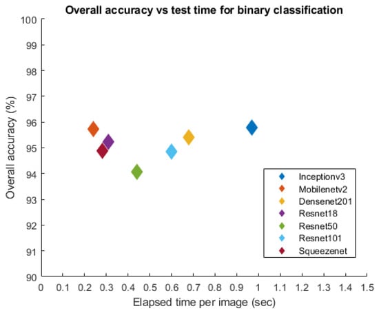 Comparison of accuracy versus the elapsed time per image using seven different networks for thalassaemia classification.