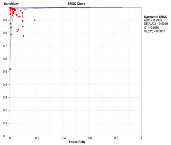Pooled urea breath test result. Symmetric receiver operating characteristics (SROC) curve.
