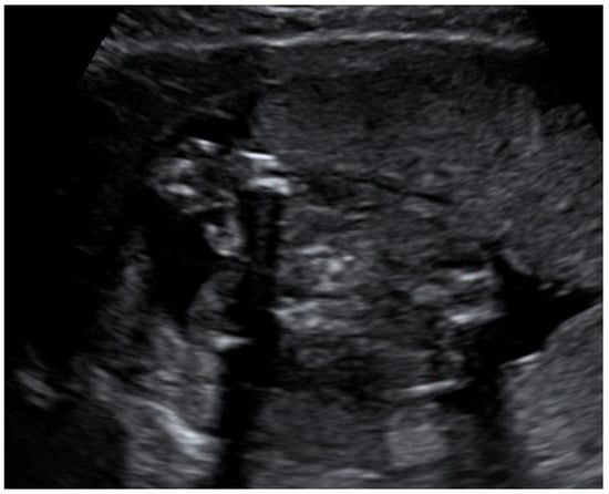 Placental involvement can be observed before fetal anomalies are detected and is characterized by a heterogenous appearance, thickness (placentomegaly), and calcifications. These can be diagnosed starting from 12 weeks following maternal infection, while the time frame for fetal abnormal imaging findings is much longer, as they appear after 20 weeks of gestation [67,68]. Placental involvement is most often associated with fetal growth restriction [69]. Additionally, ultrasound can diagnose oligohydramnios or polyhydramnios [70]. It is believed that despite the extracranial findings, the fetus can recover from a congenital infection if CNS abnormalities are not present [71].