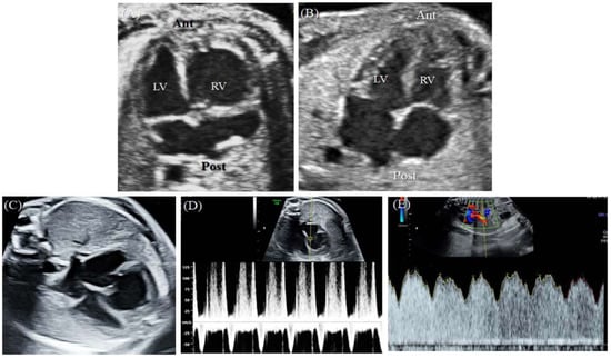 - Abuhamad, A. A Practical Guide to Fetal Echocardiography: Normal and Abnormal Hearts, 4th ed.; Lippincott Williams & Wilkins: Philadelphia, PA, USA, 2022. [Google Scholar]