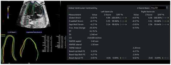 - DeVore, G.R.; Klas, B.; Satou, G.; Sklansky, M. Evaluation of fetal left ventricular size and function using speckle-tracking and the Simpson rule. J. Ultrasound Med. 2019, 38, 1209–1221. [Google Scholar] [CrossRef]