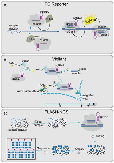 - Zhang, Y.; Qian, L.; Wei, W.; Wang, Y.; Wang, B.; Lin, P.; Liu, W.; Xu, L.; Li, X.; Liu, D.; et al. Paired Design of dCas9 as a Systematic Platform for the Detection of Featured Nucleic Acid Sequences in Pathogenic Strains. ACS Synth. Biol. 2017, 6, 211–216. [Google Scholar] [CrossRef]