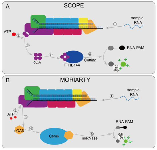 - Sridhara, S.; Goswami, H.N.; Whyms, C.; Dennis, J.H.; Li, H. Virus detection via programmable Type III-A CRISPR-Cas systems. Nat. Commun. 2021, 12, 5653. [Google Scholar] [CrossRef]