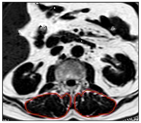 - Kim, J.Y.; Chae, S.U.; Kim, G.D.; Cha, M.S. Changes of paraspinal muscles in postmenopausal osteoporotic spinal compression fractures: Magnetic resonance imaging study. J. Bone Metab. 2013, 20, 75–81. [Google Scholar] [CrossRef]