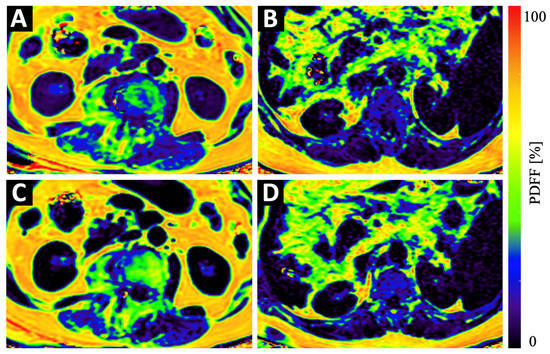 - Syvari, J.; Junker, D.; Patzelt, L.; Kappo, K.; Al Sadat, L.; Erfanian, S.; Makowski, M.R.; Hauner, H.; Karampinos, D.C. Longitudinal changes on liver proton density fat fraction differ between liver segments. Quant. Imaging Med. Surg. 2021, 11, 1701–1709. [Google Scholar] [CrossRef]