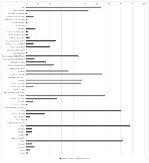 - Seymour, C.W.; Liu, V.X.; Iwashyna, T.J.; Brunkhorst, F.M.; Rea, T.D.; Scherag, A.; Rubenfeld, G.; Kahn, J.M.; Shankar-Hari, M.; Singer, M.; et al. Assessment of Clinical Criteria for Sepsis: For the Third International Consensus Definitions for Sepsis and Septic Shock (Sepsis-3). JAMA 2016, 315, 762–774. [Google Scholar] [CrossRef] [PubMed]