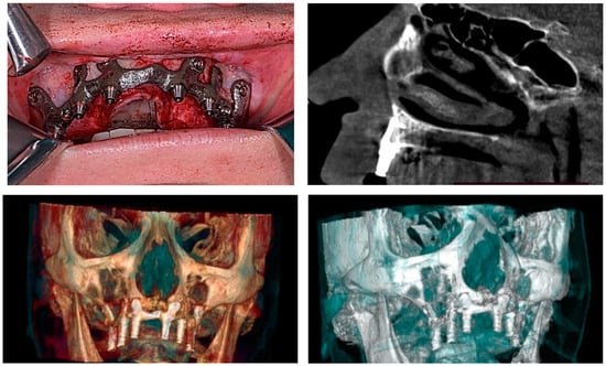 - Cerea, M.; Dolcini, G.A. Custom-Made Direct Metal Laser Sintering Titanium Subperiosteal Implants: A Retrospective Clinical Study on 70 Patients. BioMed Res. Int. 2018, 2018, 5420391. [Google Scholar] [CrossRef]
