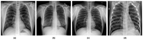 Sample datasets used in this work: (a) sample with COVID-19, (b) sample with lung opacity, (c) sample with normal, and (d) sample viral pneumonia.