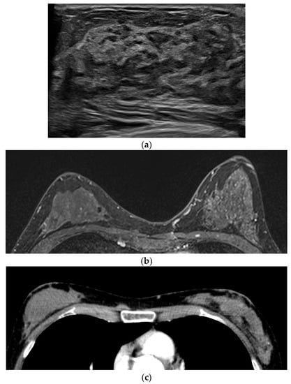 - Sardanelli, F.; Boetes, C.; Borisch, B.; Decker, T.; Federico, M.; Gilbert, F.J.; Helbich, T.; Heywang-Köbrunner, S.H.; Kaiser, W.A.; Kerin, M.J.; et al. Magnetic resonance imaging of the breast: Recommendations from the EUSOMA working group. Eur. J. Cancer 2010, 46, 1296–1316. [Google Scholar] [CrossRef] [PubMed]