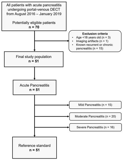 - Martin, S.S.; Trapp, F.; Wichmann, J.L.; Albrecht, M.H.; Lenga, L.; Durden, J.; Booz, C.; Vogl, T.J.; D’Angelo, T. Dual-energy CT in early acute pancreatitis: Improved detection using iodine quantification. Eur. Radiol. 2019, 29, 2226–2232. [Google Scholar] [CrossRef] [PubMed]