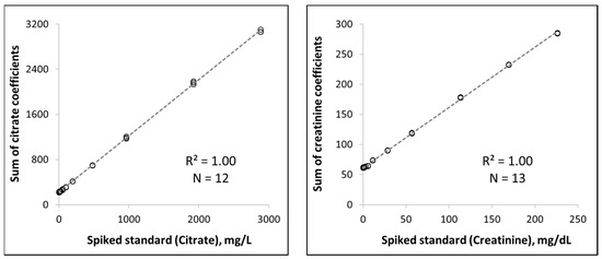 3.2. Linearity and Sensitivity of Citrate and Creatinine Measurements
