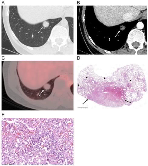 - Hashimoto, H.; Kurata, A.; Fujiwara, M.; Hara, K.; Matsumoto, J.; Kusakabe, M.; Tachibana, K.; Nashiro, T.; Terado, Y.; Akahane, M.; et al. Solitary pulmonary capillary hemangioma of adult cases: Clinicopathologic characteristics as an unrecognized entity. Am. J. Surg. Pathol. 2016, 40, 1380–1389. [Google Scholar] [CrossRef]