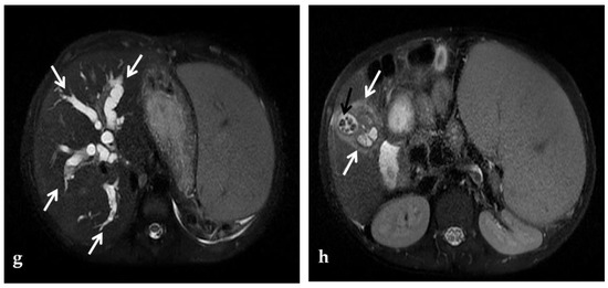 - Condat, B.; Vilgrain, V.; Asselah, T.; O’Toole, D.; Rufat, P.; Zappa, M.; Moreau, R.; Valla, D. Portal cavernoma-associated cholangiopathy: A clinical and MR cholangiography coupled with MR portography imaging study. Hepatology 2003, 37, 1302–1308. [Google Scholar] [CrossRef]