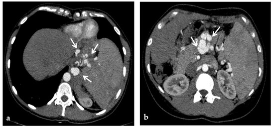 - Qi, X.; Han, G.; He, C.; Yin, Z.; Guo, W.; Niu, J.; Fan, D. CT features of non-malignant portal vein thrombosis: A pictorial review. Clin. Res. Hepatol. Gastroenterol. 2012, 36, 561–568. [Google Scholar] [CrossRef]