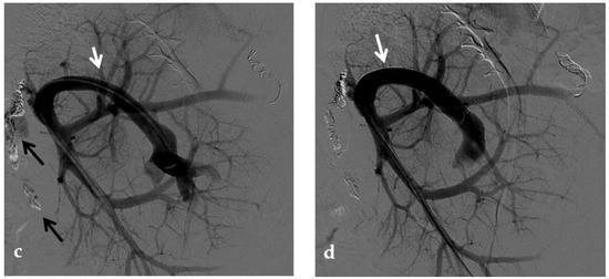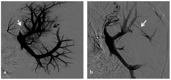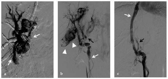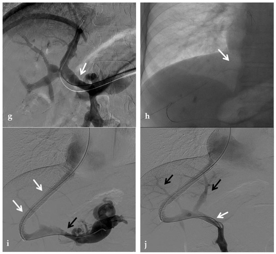 - Entezari, P.; Riaz, A.; Thornburg, B.; Salem, R. Percutaneous Ultrasound-Guided Superior and Inferior Mesenteric Vein Access for Portal Vein Recanalization-Transjugular Intrahepatic Portosystemic Shunt: A Case Series. Cardiovasc. Interv. Radiol. 2021, 44, 496–499. [Google Scholar] [CrossRef] [PubMed]