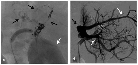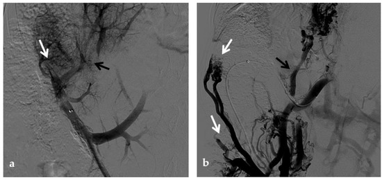 - Kim, J.H.; Ko, G.Y.; Sung, K.B.; Yoon, H.K.; Kim, K.R.; Moon, D.; Lee, S.G. Transvenous variceal embolization during or after living-donor liver transplantation to improve portal venous flow. J. Vasc. Interv. Radiol. 2009, 20, 1454–1459. [Google Scholar] [CrossRef] [PubMed]