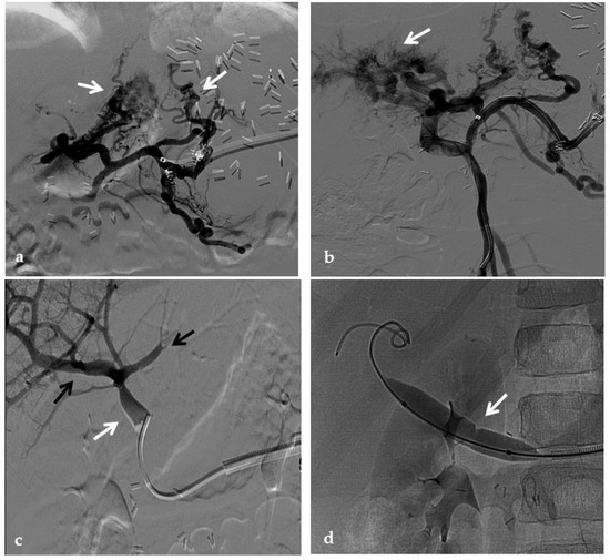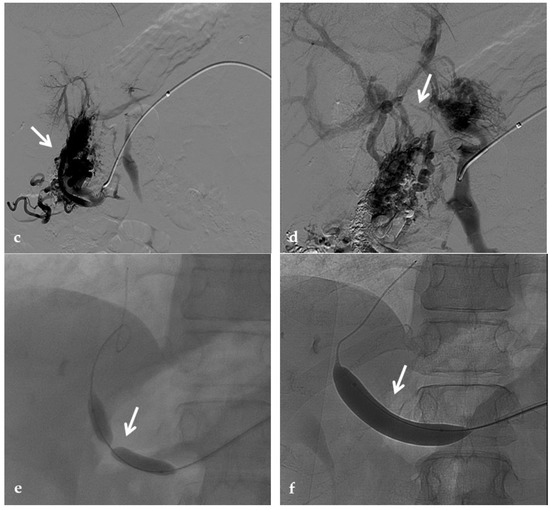 - Rossle, M.; Haag, K.; Ochs, A.; Sellinger, M.; Noldge, G.; Perarnau, J.; Berger, E.; Blum, U.; Gabelmann, A.; Hauenstein, K.; et al. The transjugular intrahepatic portosystemic stent-shunt procedure for variceal bleeding. N. Engl. J. Med. 1994, 330, 165–171. [Google Scholar] [CrossRef]